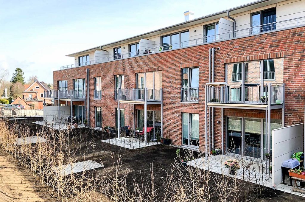 Die ehemalige Lagerfläche eines Baustoffunternehmens bietet seit dem Frühjahr 2018 Platz für drei 2-geschossige Mehrfamilienhäuser mit jeweils einem Staffelgeschoss. Somit sind 30 neue Wohneinheiten im Zentrum Bordesholms entstanden. Das Konzept passt sich Geschoss- und Lagetechnisch optimal an die Umgebungsbebauung an.