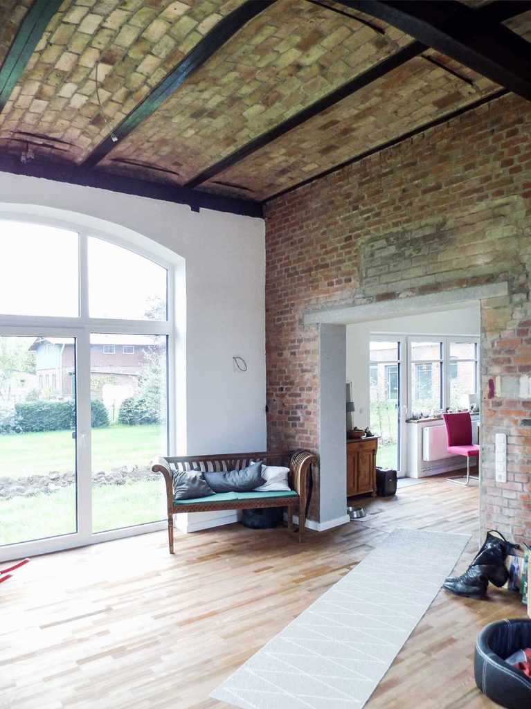 Ein alter Bauernhof wurde umgebaut und wird nun als Reitanlage mit therapeutischem Hintergrund genutzt. Ein alter Silo wurde abgebrochen, um Platz für einen neuen Parkplatz zu schaffen. Ein ehemaliger Kuhstall wurde saniert und wird nun als Pferdestall genutzt. Die restlichen Kuhställe wurden abgerissen und lassen nun Platz für Freiflächen. Zusätzlich wurde eine neue Reithalle im Holzhallenbau errichtet. Das bestehende Wohnhaus wurde als solches erhalten und wurde um eine Wohnung ergänzt. Zusätzlich wurde die Nutzung des Gebäudes um Therapieräumlichkeiten erweitert.